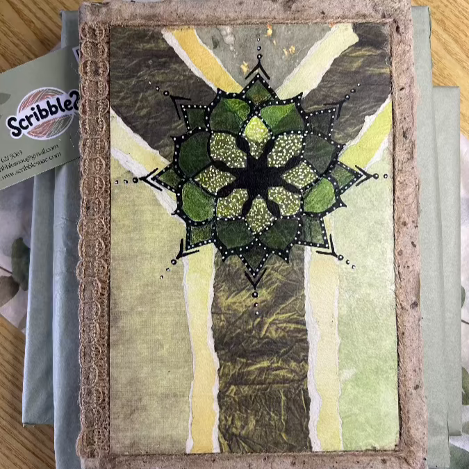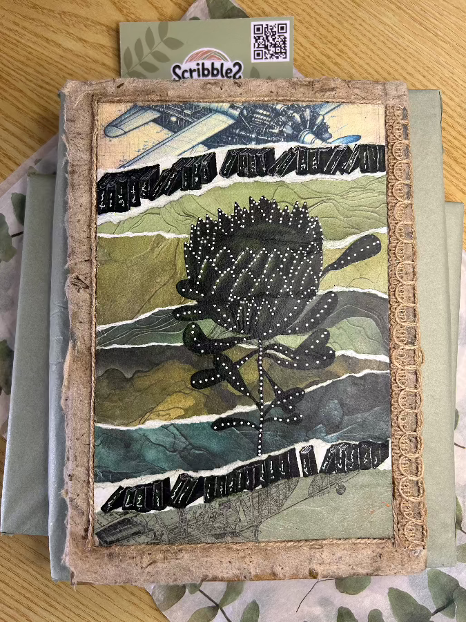 Cover: Cardstock, handmade paper, paper, pastel pencils, ink, paint. Sealed with beeswax.