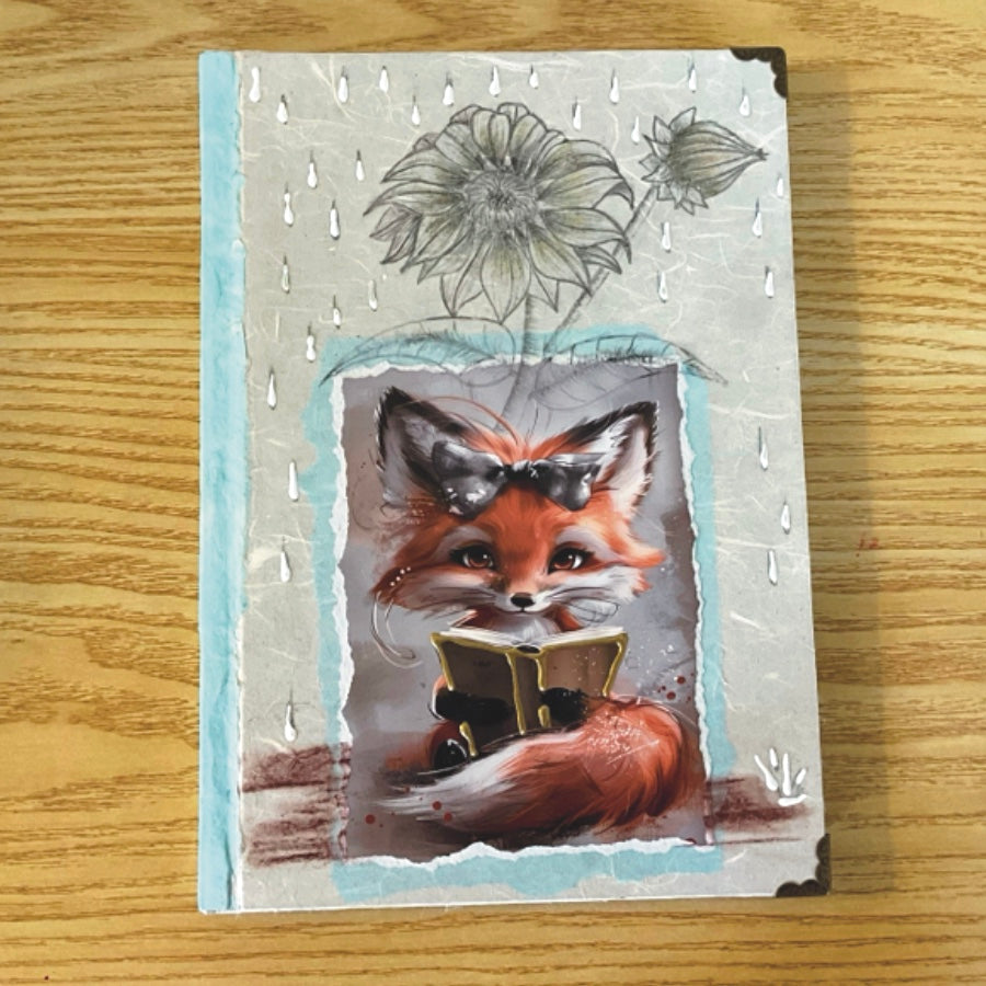 Cover: Cardstock, paper, mulberry paper, tissue paper, pastel pencils, pencils, puff paint. Sealed with beeswax.
